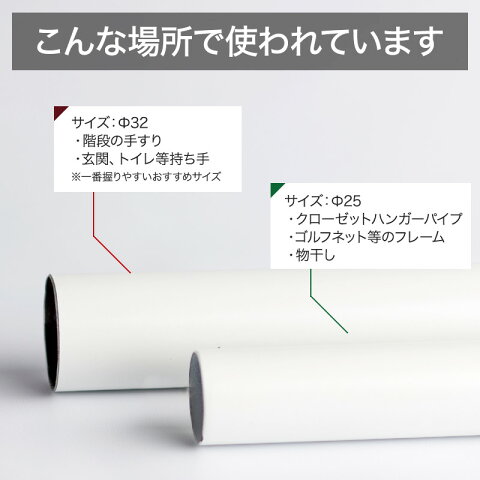 関連商品 ■ホワイトパイプブラケット■ ブラケット止 ブラケット通 25Φ960円 25Φ960円 32Φ1250円 32Φ1250円 首長ブラケット止 首長ブラケット通 25Φ1080円 25Φ1080円 32Φ1450円 32Φ1450円 ソケット ステンレスパイプ 25Φ390円 25Φ1710円〜 32Φ620円 32Φ2030円〜白パイプ 手摺・手すり・タオル掛け・物干し竿・ハンガーパイプ・棚・パイプインテリア・屋外での使用等、組み合わせで色々作れるDIY資材! ■サイズ比較 商品詳細 商品名 ホワイトパイプ サイズ 直径32mm、厚み1mm 材質 パイプ:鉄管、仕上げ:ホワイト焼付き塗装 納期 平日の午後12時までに、クレジットカード(決済エラーなし)又は・商品代引きでご購入の場合即日出荷が可能です。