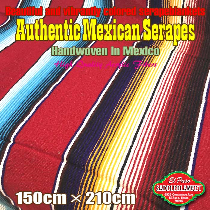 エルパソ サドルブランケット メキシカン サラペ ブランケット(レッドC) 150cm×210cm 手織り メキシコ製 ネイティブ柄 ラグ キャンプ